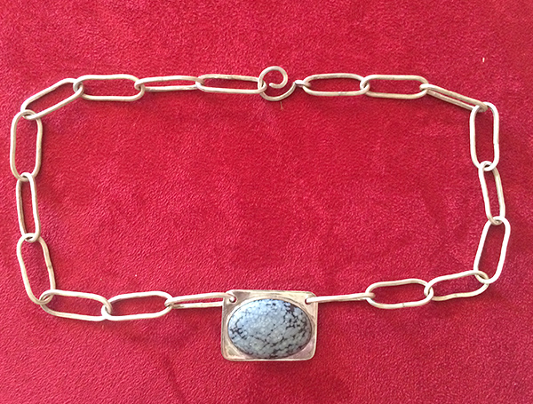 Fine Silver Chain, Snowflake Obsedian set in Sterling Silver.